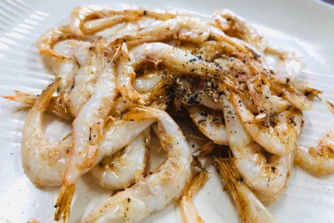 ビールやワインと好相性。「甘えびのオリーブオイル焼き」